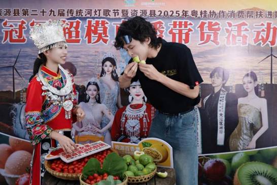 近日,广西资源县迎来一场 “农文旅 + 潮流” 的跨界盛宴——8名冠军超模走进这片桂北山水秘境,借 2025 年资源县第二十九届河灯歌节的传统节庆东风,在粤桂协作机制与资源县供销社的合力支持下,以助农为核心抓手,创新打造 “农文旅电商 + 消费帮扶” 新场景。通过多元直播形式,不仅推动资源县优质农产实现 “三农产品上行” 的跨越式发展,更促进农文旅深度融合,为粤桂协作高质量发展注入全新活力,助力乡村振兴迈出坚实步伐。